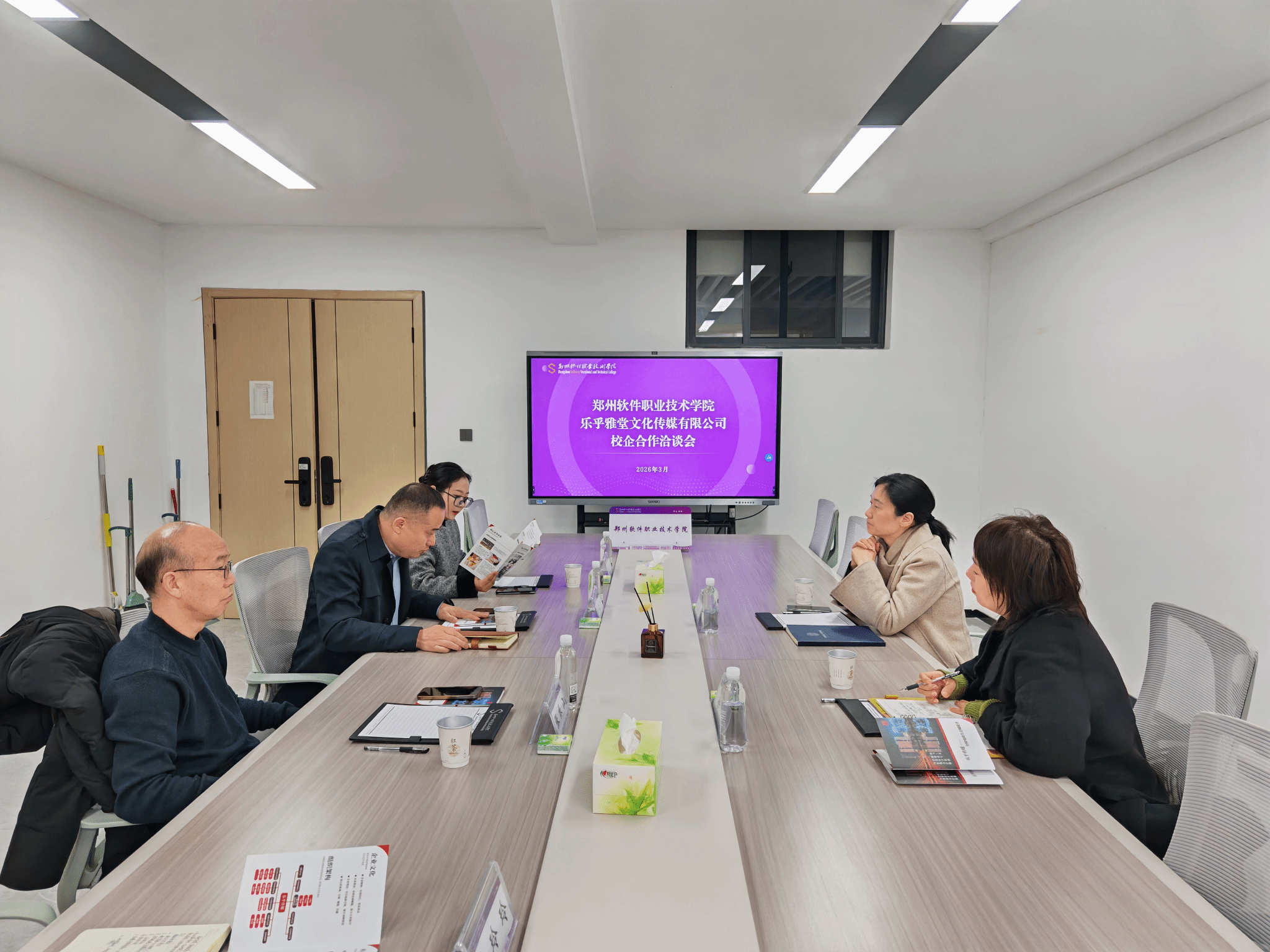 为深化产教融合、搭建校企协同育人平台,3月17日,乐乎雅堂文化传媒(河南)有限公司总经理张艳萍、电商赋能服务中心总监徐宁到访我校电商学院洽谈校企合作,电商学院院长胡银着、教研室主任安新媛参加会议。
