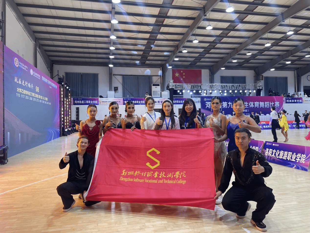 金秋十月,舞姿翩跹。10月17日至18日,河南省第九届学生体育舞蹈比赛(大学组)在河南体育学院登封校区火热开赛,来自全省43所高校的近900名选手齐聚赛场,围绕57个组别、1204个竞赛项目展开激烈角逐。由郑州软件职业技术学院基础教学部体育教研室的牛豪点、张路曼、尚静楠三位老师指导的郑软甲组参赛学子不负众望,在拉丁舞甲组比赛中荣获佳绩,为校争光!