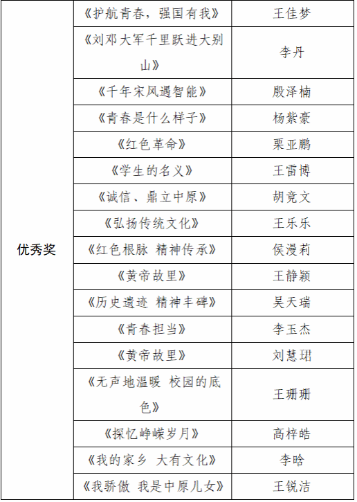 郑州软件职业技术学院“强国青年说,青年眼里的强国答卷”——“我心中的思政课”大学生微视频活动已于2025年12月31日征集作品评选结束,经过评审,现将获奖结果公布如下(排名不分先后),如有疑问可咨询马克思主义学院任老师,电话:18749480565。