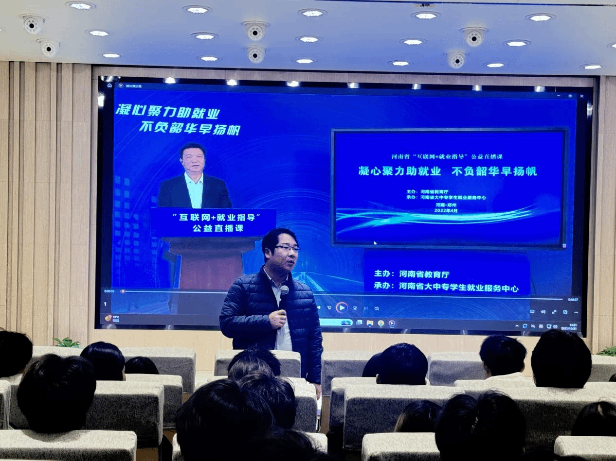 10月21日,郑州软件职业技术学院学生处与大学生职业规划教研室组织学生观看河南省 “凝心聚力助就业,不负韶华早扬帆” 互联网 + 就业指导公益直播课,旨在深入贯彻落实教育部及河南省教育厅关于高校毕业生就业工作的决策部署,帮助毕业生认清求职关键期,缓解就业焦虑,顺利实现从校园到社会的过渡,全力保障学校首届毕业生就业工作高质量推进。