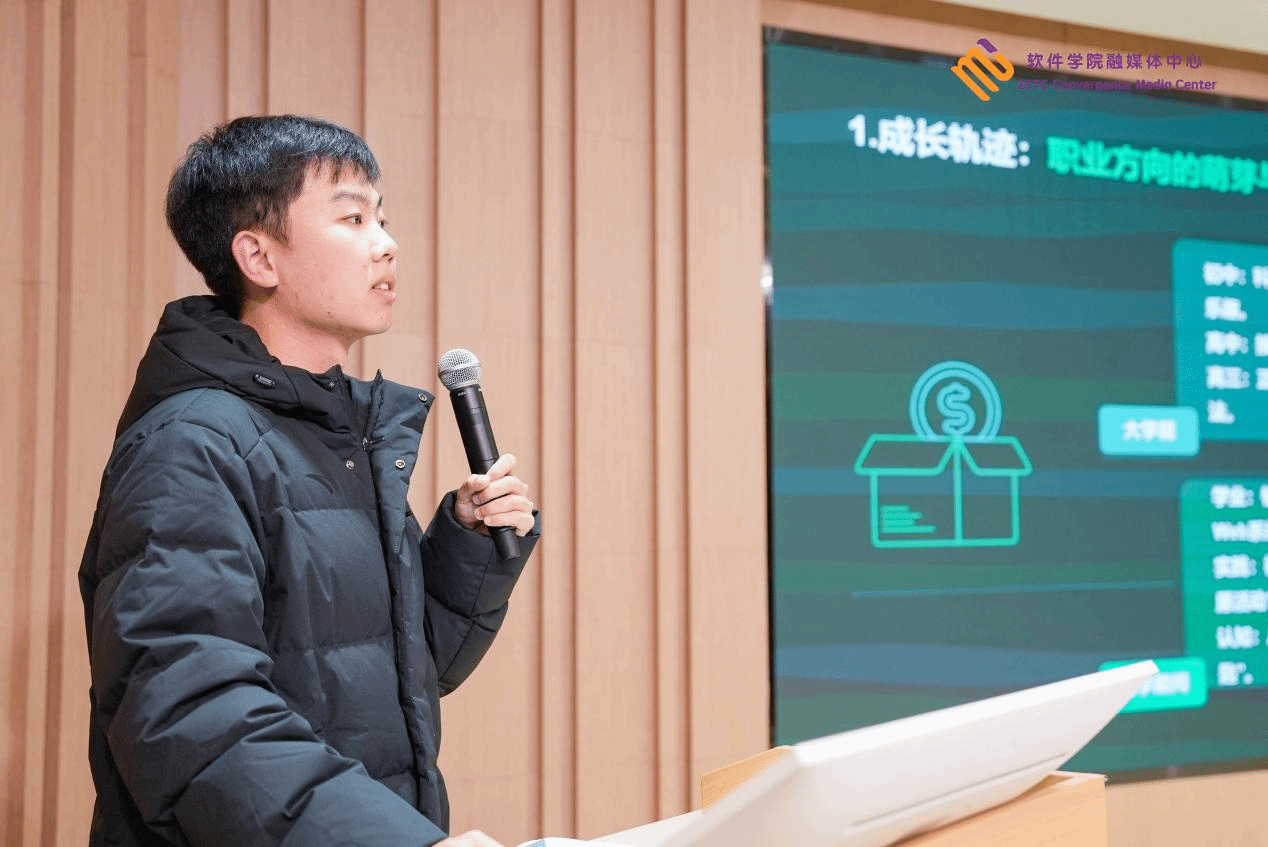 分享环节中,优秀选手代表依次登台传经送宝。23级人工智能学院大数据技术专业的赵子浩学长,结合自身斩获第二届全国大学生职业规划大赛河南省赛成长赛道(职教组)铜奖等多项赛事荣誉的经历,拆解职业规划书撰写逻辑与PPT设计技巧,强调“数据支撑”与“目标落地”的关键作用。24级物联网应用技术专业的张博飞学长,分享了备赛全流程,重点讲解PPT制作的细节要点,提醒同学们注重模板简约性、字体统一性与图文搭配合理性。同为24级的大数据技术专业学长张胆特,以“青春成长与目标锚定”为主题,讲述了从初中结缘新能源到大学锚定“工业大数据工程师”目标的成长轨迹,分享“项目倒逼学习”“主动挖掘竞赛资源”等实用方法。
