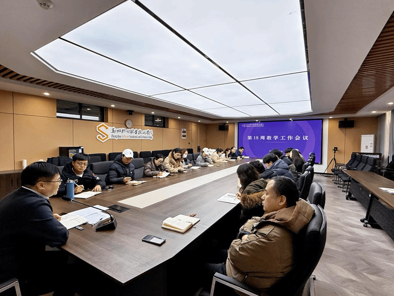 12月30日郑州软件职业技术学院第十八周教务教学工作会议在205会议室召开。会议由副校长王利凯主持。党委副书记、党政办主任胡银着,人工智能学院主任孙丰菊,及各教研室负责人出席会议。