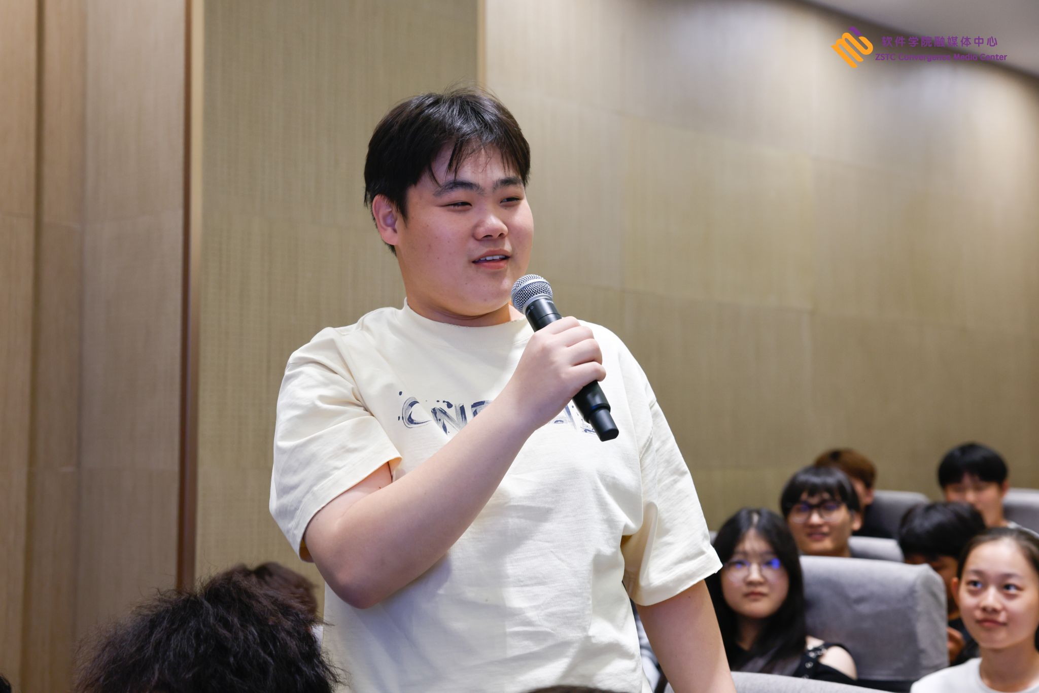 讲座特邀曙光瑞翼教育项目总监于玮烨先生作题为《走进软件世界:从0到1的技术启蒙与行业图景探索》的专题分享。他从“什么是软件技术”这一基本问题切入,深入浅出地解析了当前软件行业的业务现状与发展趋势,重点阐述了“岗课赛证融通”的课程体系设计理念,以及“以岗促课、以课为岗”的实践教学思路。于总监建议新生遵循“从模仿到创造”的学习路径,勇于动手实践,积极通过竞赛锻炼专业能力。
