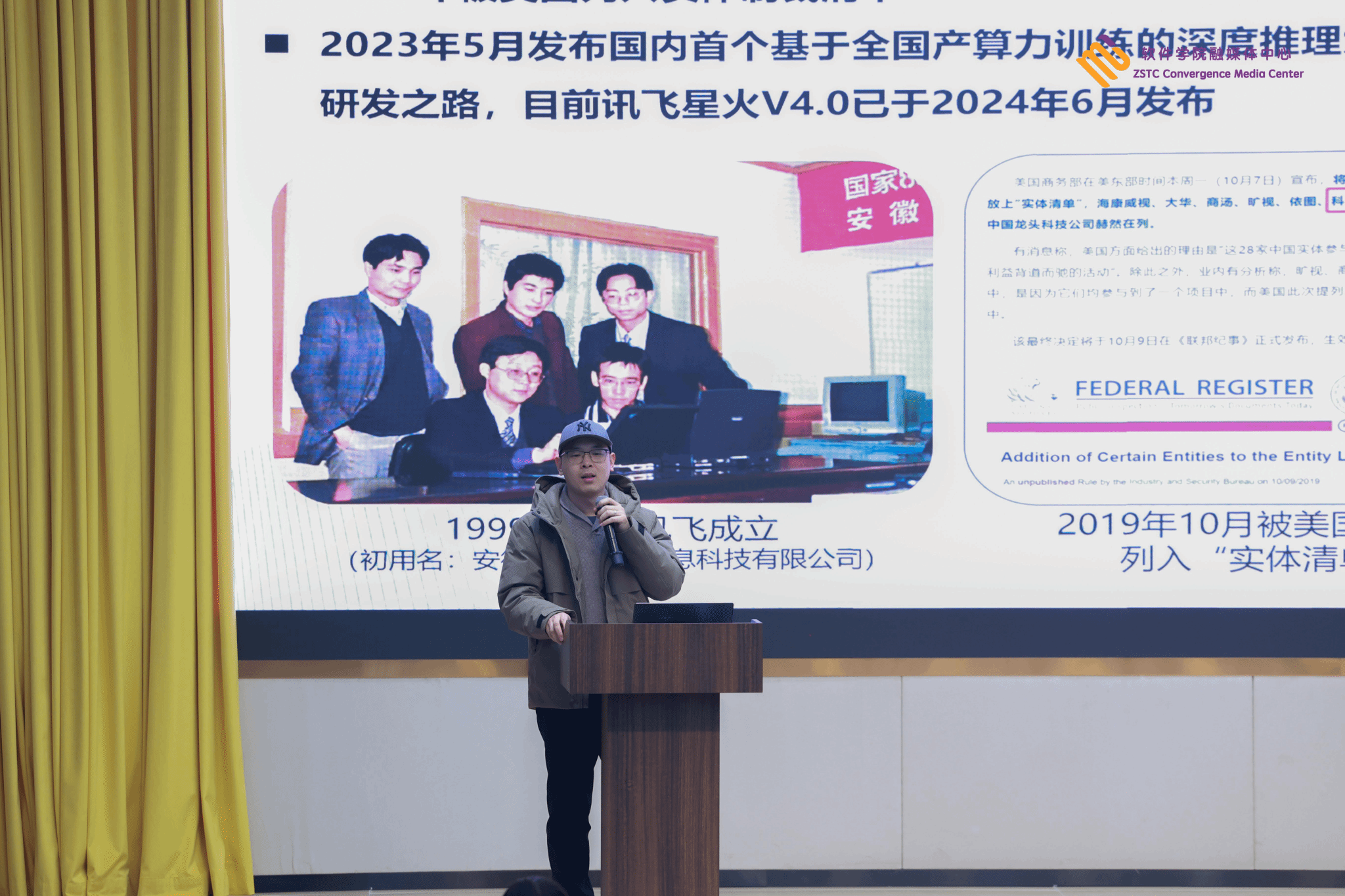 讲座伊始,主持人王毅老师介绍了我校和科大讯飞的校企合作情况。他从课程资源、竞赛成绩、讯飞工坊、实习就业等方面进行讲解,展示了我校和科大讯飞校企合作在人才培养和产学研合作等领域收获的丰硕成果。