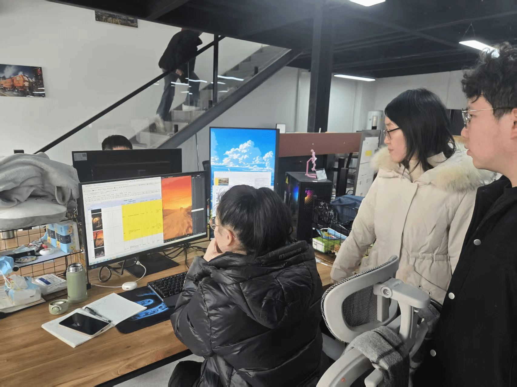 在郑州心生科技有限公司负责人的陪同下,教研室团队实地参观了企业的 AIGC 动漫设计创作中心,详细了解了企业在 AI 辅助动漫原画设计、IP 内容开发、短视频动画制作等核心业务的具体运作流程,以及各业务板块的岗位设置、技能要求和人才缺口情况。