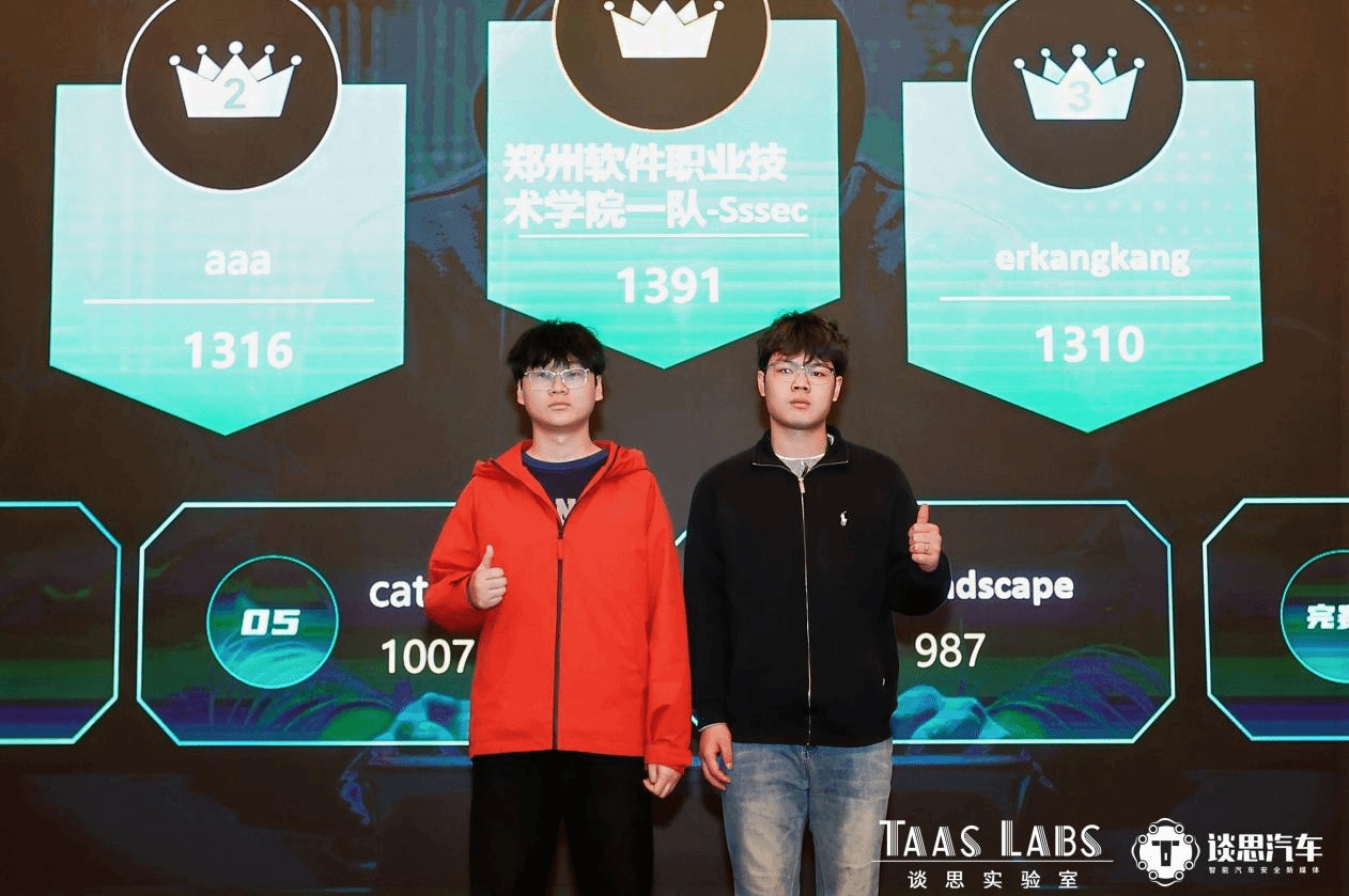近日,2026 首届汽车安全白帽黑客大会在上海圆满落幕。我校网络安全相关专业学子组建的郑州软件职业技术学院一队(Sssec),在大会核心实战环节 “30分钟快闪CTF” 挑战赛中,从众多参赛队伍中脱颖而出,以绝对优势斩获大赛一等奖(第一名),充分展现了我校学子扎实的专业功底、出色的临场应变能力和卓越的实战攻防水平。