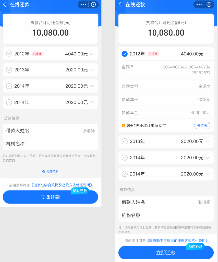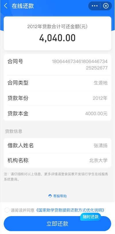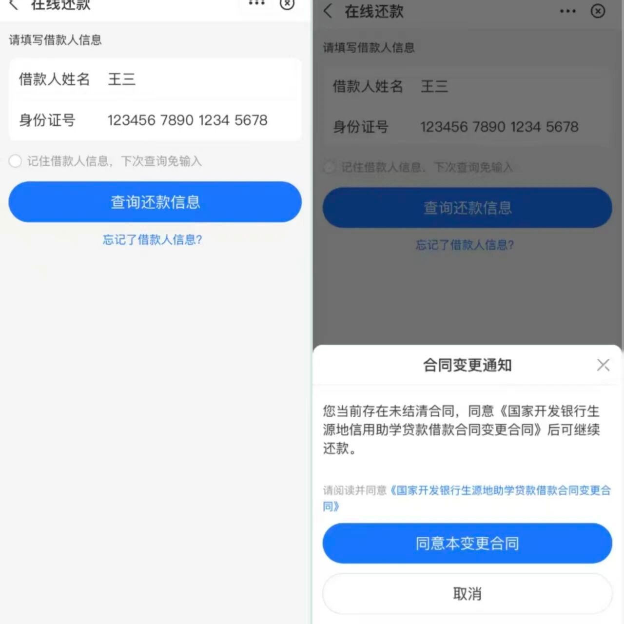 如未同意《国家开发银行生源地/校园地助学贷款借款合同变更合同》,先阅读并同意后才能进行还款。