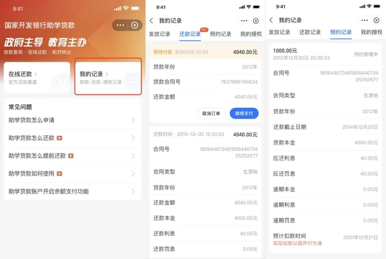 在小程序首页-我的记录,可查看还款记录、预约记录等信息。