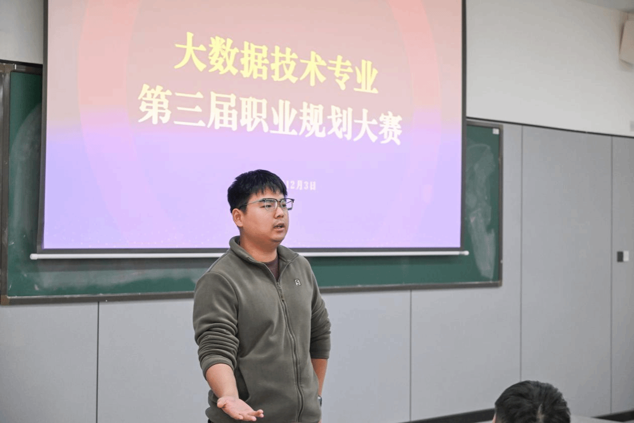 为深入推进生涯教育与就业指导工作,引导大学生树立正确的成才观、就业观,提升就业竞争力,12月3日,大数据技术专业组第三届大学生职业规划大赛专业初赛在七号楼302教室顺利举行。本次比赛以“筑梦青春志在四方,规划启航职引未来”为主题,旨在“以赛促学、以赛促教、以赛促就”,助力学生实现更充分、更高质量的就业。