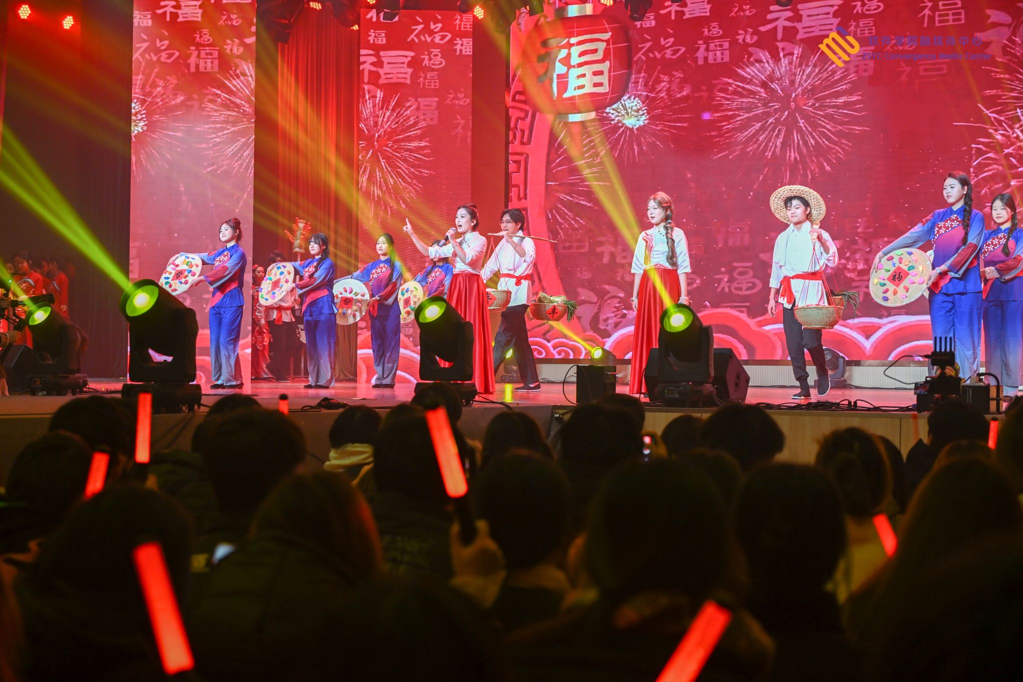 2025年12月24日晚,郑州软件职业技术学院艺术学院“艺心向党”文艺汇演在校体中心圆满举行。全校师生欢聚一堂,以歌舞、朗诵、合唱等多元艺术形式,致敬党的百年征程、礼赞新时代风采,在辞旧迎新的温馨氛围中,奏响了红色美育与青春力量交融的动人乐章。