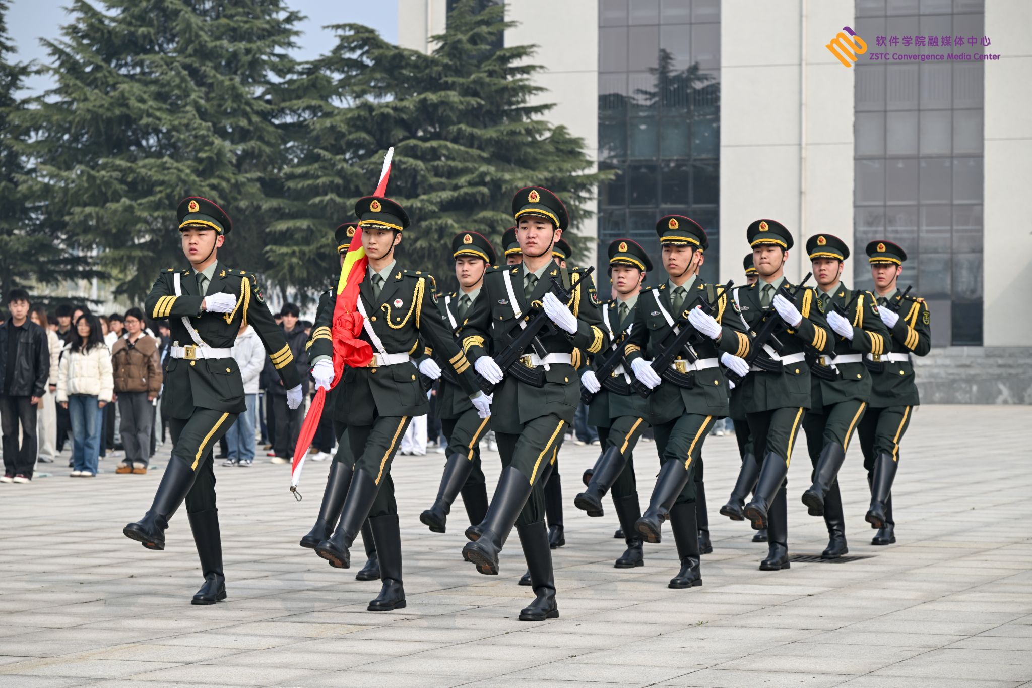 国旗广场上,气氛庄严肃穆。国旗护卫队队员迈着铿锵有力的步伐,护送五星红旗步入升旗台。在雄壮的《义勇军进行曲》中,全体师生肃立行注目礼,伴随着嘹亮的旋律,鲜艳的五星红旗冉冉升起,师生们齐声高唱国歌,歌声响彻整个广场,充分展现出郑软师生昂扬向上、奋发有为的良好精神风貌。