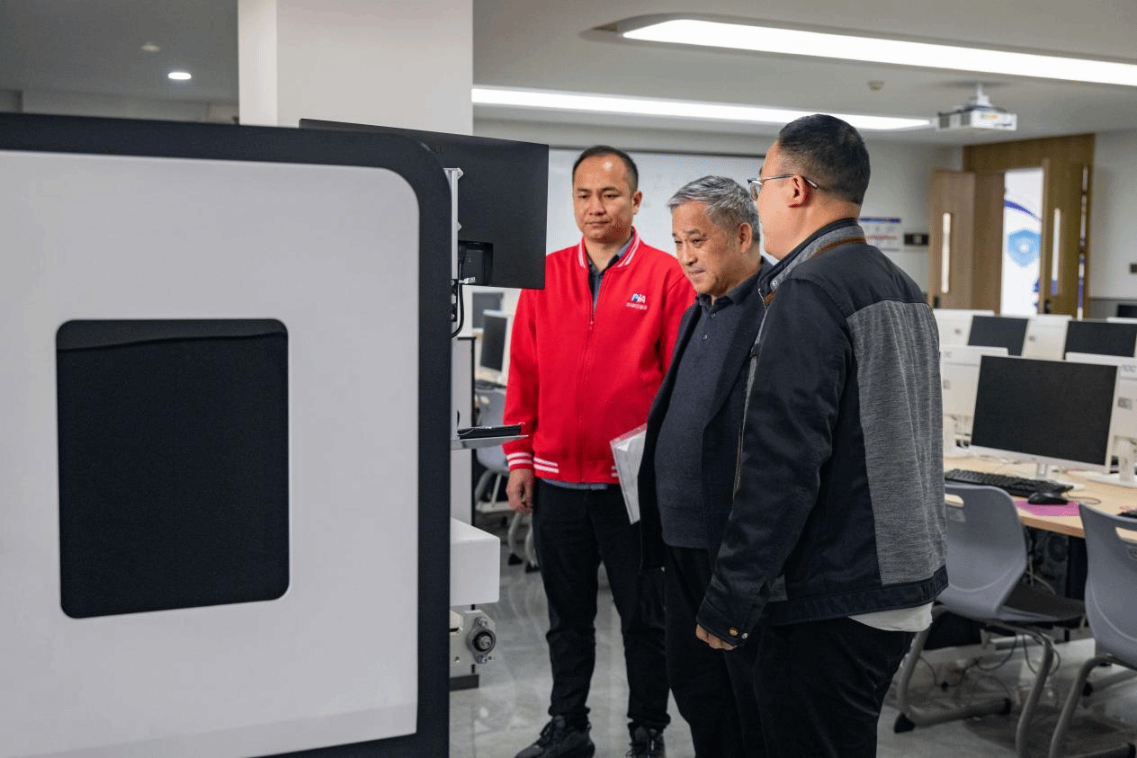 在全场嘉宾的共同见证下,校企双方顺利完成捐赠物资清单交接。我校特向厦门力和行视觉科技有限公司授予荣誉牌匾,正式颁定“校企合作贡献单位”称号,定格校企携手、同心育人的暖心瞬间与重要里程碑。随后,厦门力和行工程师岳中江详细讲解了捐赠设备的技术参数、功能优势与实训应用场景,为设备快速投入教学实操、助力学生夯实专业技能与提升实践素养提供了有力保障。