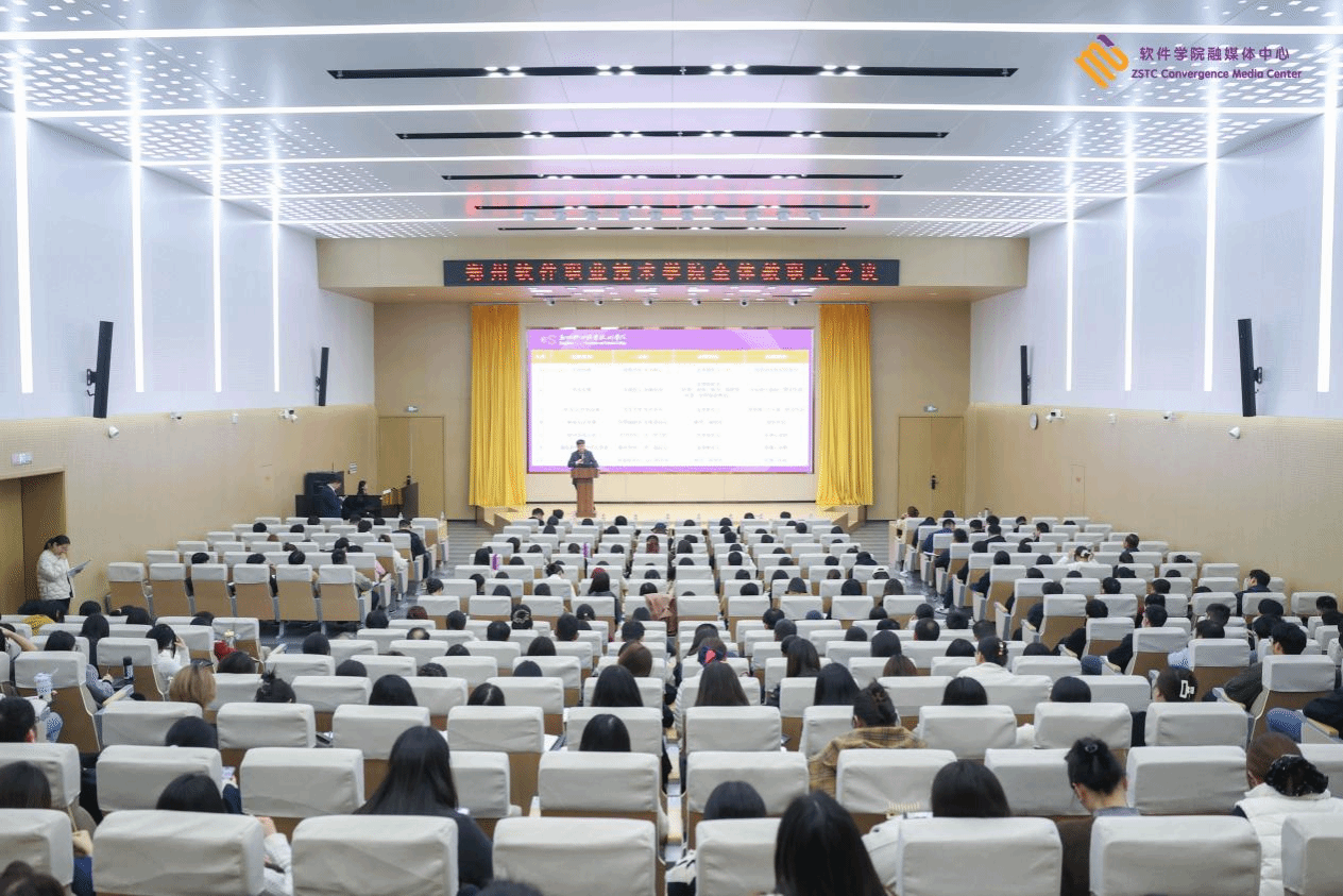 2025年11月4日,郑州软件职业技术学院在报告厅召开全体教职工大会,聚焦本学期教职工能力提升系列活动的部署工作。学校中层干部及全体教职工参加会议。会议由副校长王利凯主持。