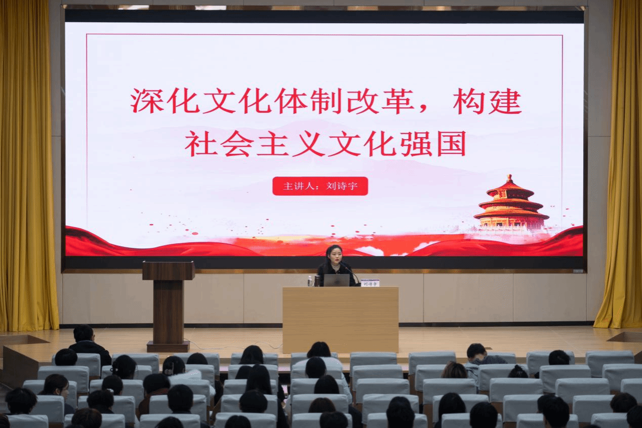 开班仪式后,马克思主义学院刘诗宇老师以“深化文化体制改革,构建社会主义文化强国”为主题进行培训第一讲。