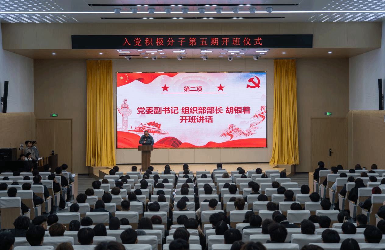 11月18日,郑州软件职业技术学院第五期入党积极分子培训班开班仪式暨第一讲在图书馆报告厅举行。校党委副书记、组织部部长胡银着,党委宣传部、统战部部长王亚楠及各基层党组织书记等出席仪式。全校三百余名入党积极分子及师生代表共同参与。