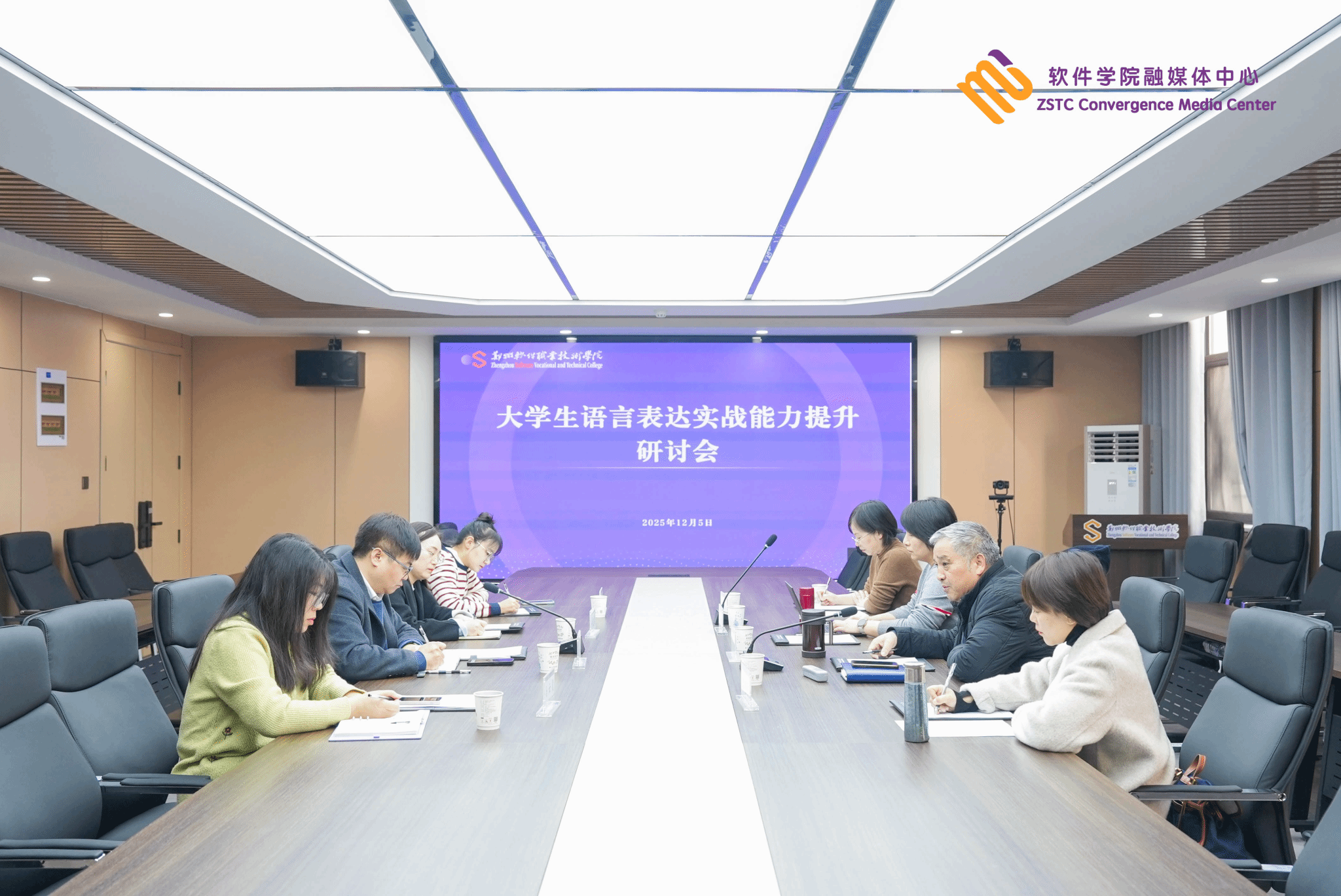12月5日,郑州软件职业技术学院召开大学生语言表达实战能力提升研讨会。校长秦方奇教授,宇华教育集团文宣部部长兼法务部部长郑丽娜,副校长王利凯,平顶山学院新闻与传播学院副院长段纳、副院长娄艳阁、黄淮学院文化传媒学院网络与新媒体系副主任刘文琦及相关教师代表共同参会。