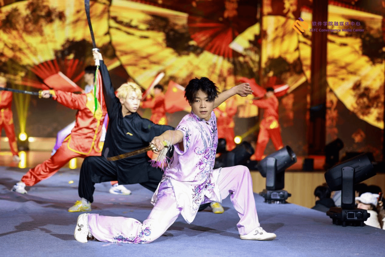 整场晚会节目形式丰富、内容精彩纷呈。开场舞蹈《哈尼宝贝》以活泼欢快的节奏瞬间点燃全场气氛;随后武术表演《龙狮少年》刚柔并济、气势如虹,彰显中华传统魅力;拉丁舞《Latin girl》热情奔放、舞步飞扬,展现多元艺术风采;相声《欢声笑语》妙语连珠,引得观众笑声不断;舞蹈《山海》通过优美的肢体语言,诠释了追逐梦想的执着与力量;歌曲串烧《梦想·绽放》引发全场共鸣,将晚会推向高潮。此外,幽默短剧《你的婚礼3》、深情对唱《爱错》、街舞《齐天·闹天宫》、走秀《霓裳魅影》等节目各具风采,充分展现了郑软学子多才多艺、朝气蓬勃的精神面貌。