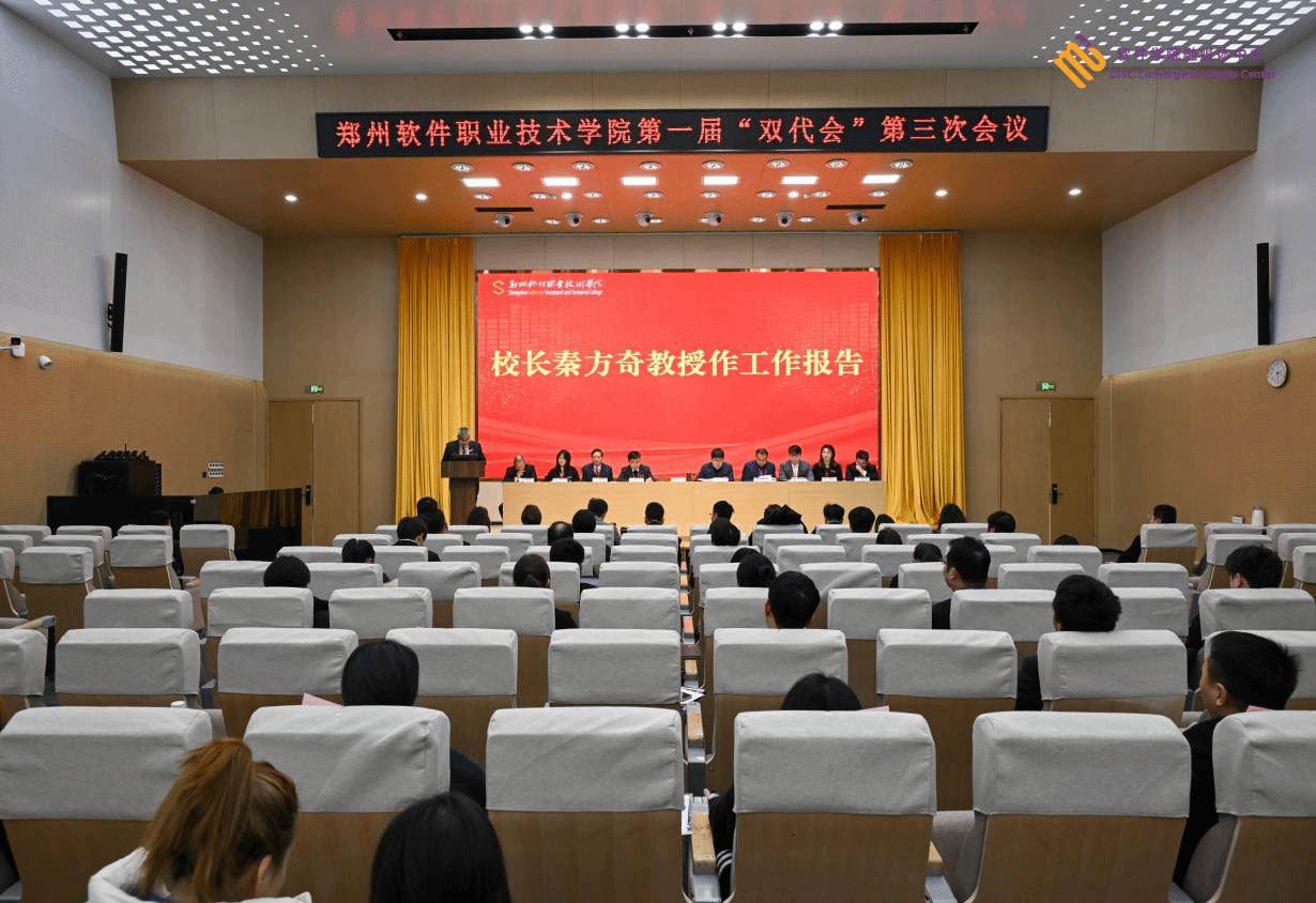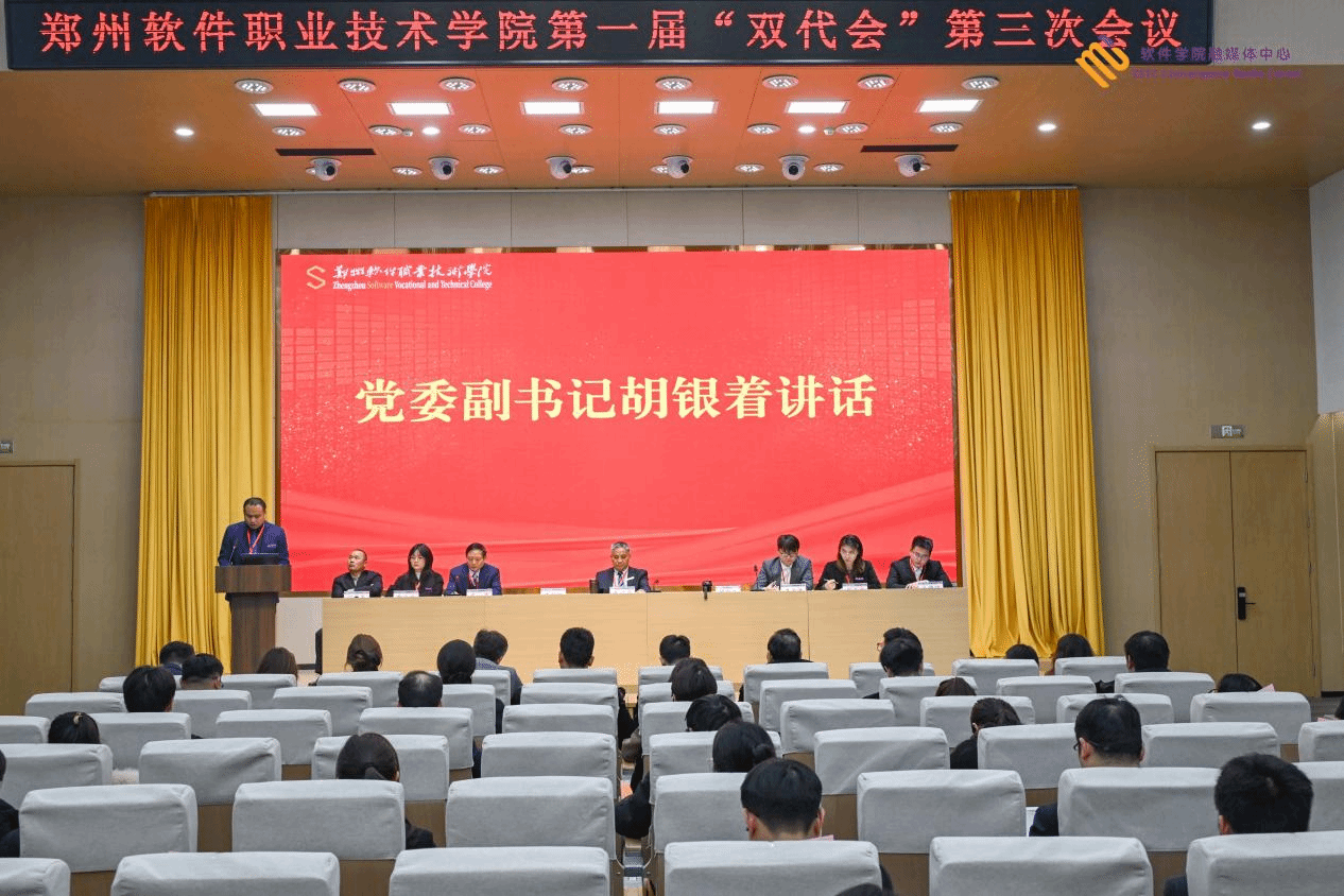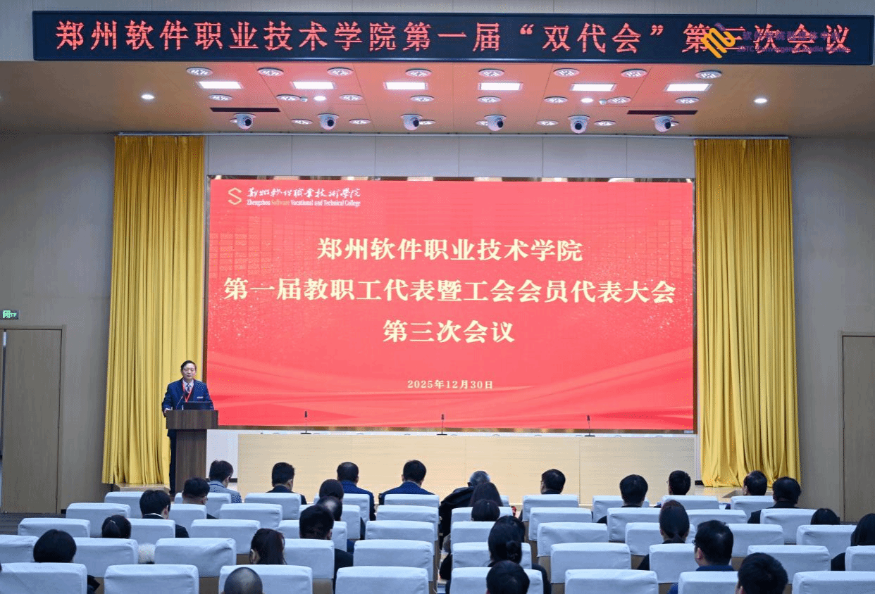 2025年12月30日,郑州软件职业技术学院第一届教职工代表大会暨工会会员代表大会第三次会议在报告厅召开。全体校领导、中层干部及大会正式代表参会,预备会议由工会主席马俊伟主持。