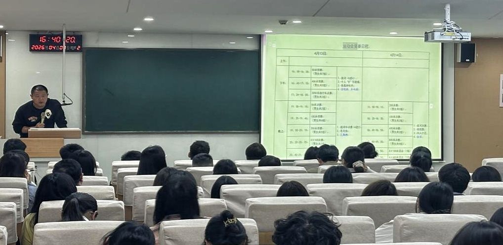 4月7日下午,为保障2026年第三届春季运动会安全、有序、高效举办,我校在1号教学楼109阶梯教室召开裁判员专题培训会。会议由人事处周生举科长主持,全体裁判员、辅导员和教师参会。